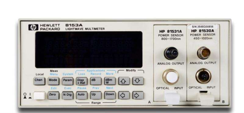 8153A光波万用表主框架提供二个插槽,用于插入模块.由于模块可以任意配置组合,因此该仪器可当作1/2通道功率计,1/2通道光源,损耗测试装置,或作为回波损耗测试装置.